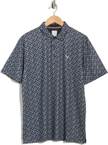 A sharp floral‑blocked pattern decorates this stretchy golf polo enhanced with built‑in sun protection so you can focus on your swing.