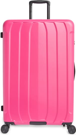 Exterior features: Water-resistant ABS material with a textured surface ensures lightweight durability and protection. A telescoping handle maximizes comfort and control for users of different heights. Eight-wheel spinners glide effortlessly to navigate through busy airports.