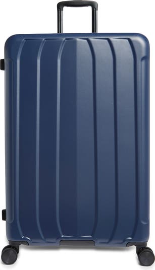 Exterior features: Water-resistant ABS material with a textured surface ensures lightweight durability and protection. A telescoping handle maximizes comfort and control for users of different heights. Four double-wheel spinners glide effortlessly to navigate through busy airports.