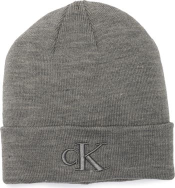 An embroidered monogram at the cuff brings signature Calvin Klein styling to this beanie knit from soft yarns.