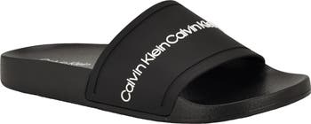 Head to the beach or pool in this logo-embellished slide sandal featuring a contoured footbed and flat, walkable sole.