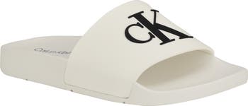 Signature logo detailing stands out on the vamp of a casual slide sandal outfitted with a contoured footbed for long-lasting comfort.