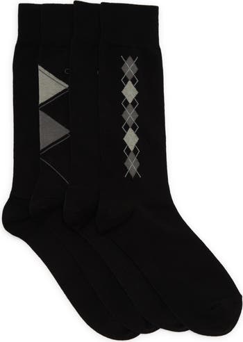 Fits sizes 7-12 - Pack of 4 - Crew length - Ribbed cuff - Assorted argyle pattern details - Imported