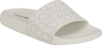 Logo printing adds a refined touch to a classic pool slide that is crafted with a molded, cushioned footbed.