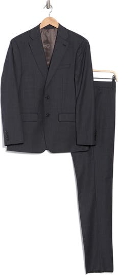 Elevate your wardrobe with this wool-blend suit framed by notched lapels and flap pockets for polished style.