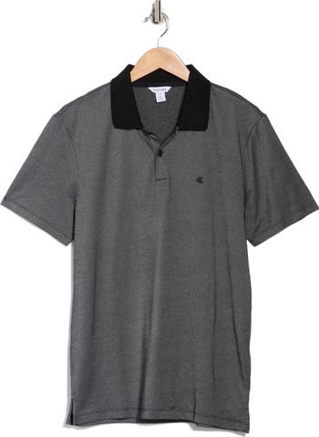 Look sharp on warm-weather days in a jacquard polo made from a breathable cotton blend.