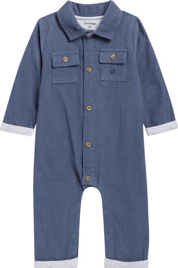 Soft corduroy and a classic collar make this romper a charming pick for baby, while front buttons make diaper changes a breeze.