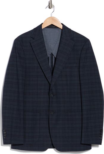 Elevate your wardrobe with this dark blue plaid sport coat framed by notched lapels and patch pockets for polished style.