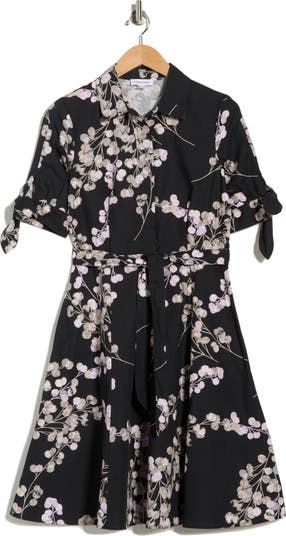 Floral Short Sleeve Tie Cotton Shirtdress