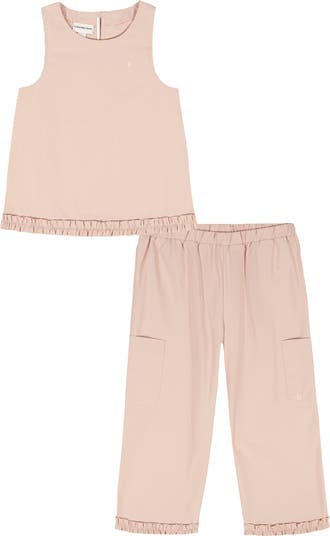 Dress your cutie in easy style with this cotton-blend tank and pants set complete with ruffled trim and sweet signature embroidery.