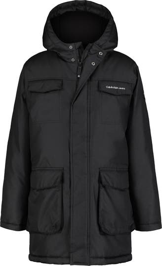 Conquering the chill on a wintry day is made easy when they top their look with this signature hooded jacket made with a spacious hood and roomy front pockets that keep hands toasty.