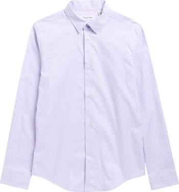 They'll look sharp in a snap in this smart button-up shirt cut from a textured cotton-blend fabric.