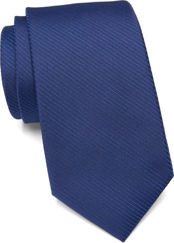 A solid and versatile hue covers a neck tie for handsome flair for any dressy occasion.