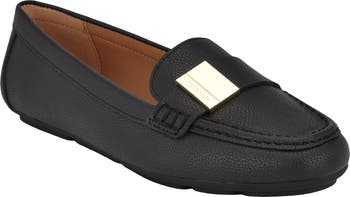 A pebbled faux-leather loafer is topped with logo-adorned metal hardware for heritage appeal.