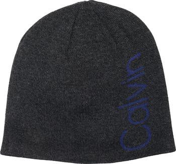 A reversible design offers versatile styling of a signature beanie complete with the brand's logo.