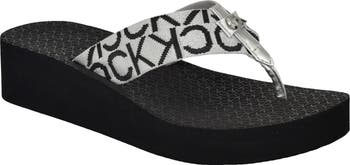 A flip flop sandal with a little extra lift features logo-printed straps to complete a stylish look.