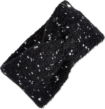 Tame your tresses and pull back your locks with this cozy knit headband flecked with metallic threads for a hint of shimmer.