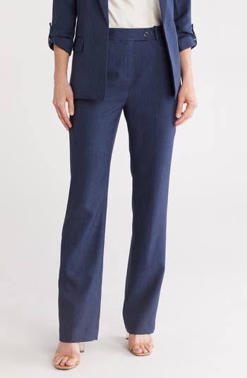 Elevate your wardrobe with flat-front trousers cut from heathered twill for a chic and easy denim look.