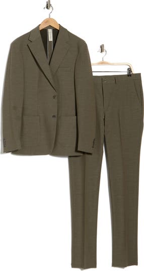 - Jacket has notched lapels; four-button cuffs; chest pocket; patch pockets; interior pocket