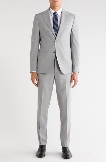 Stretch-kissed wool brings polish and distinction to a wardrobe-staple suit that's designed with notched lapels for a classic, timeless look. The flat-front trousers complement the traditional detailing to keep the silhouette crisp and clean.
