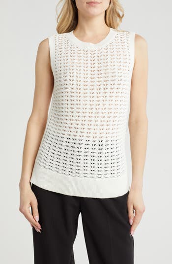 Airy, lightweight open stitching textures this cotton sweater-tank that's perfect for layering up or wearing solo.