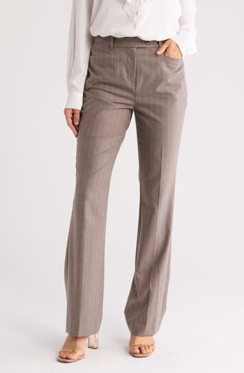 Elevate your work-day style with pinstriped pants fashioned in a flat-front silhouette and finished with convenient pockets.