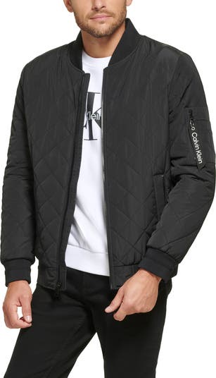 A classic bomber jacket gets updated with a quilted texture for casual yet cool style.