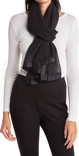 Add chic flair to your accessories wardrobe with a scarf featuring chiffon construction and a satin border.
