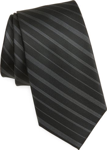 Tonal stripes lend classic appeal to a woven tie that's a perfect way to elevate special-occasion looks with minimal effort.