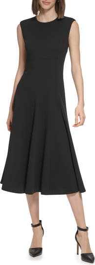 A timeless fit-and-flare silhouette makes this scuba crepe dress a perfect go-to for special occasions.