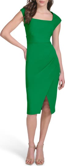 Perfect for the workday or after-hours events, this sleeveless stretch-crepe midi dress boasts asymmetric pleats and a tulip hem for polished style.