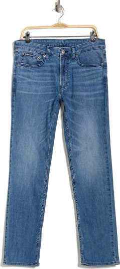 Slim, straight-leg jeans are made from relaxed stretch denim and finished with a medium wash for relaxed style.