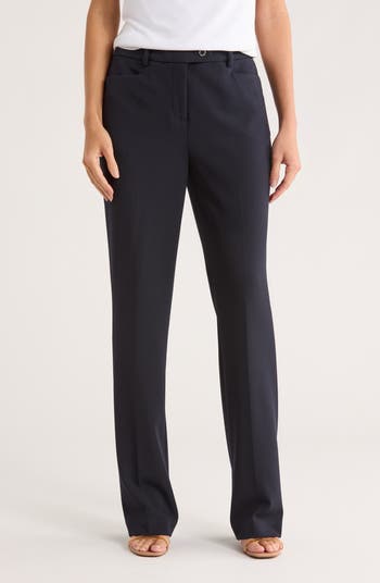 Designed with a straight leg and versatile solid hue, these flat-front pants are sure to keep you looking sharp for work or play.