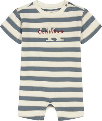 The brand's logo lends heritage charm to a romper for baby that's patterned in classic stripes and made from a cozy cotton blend.