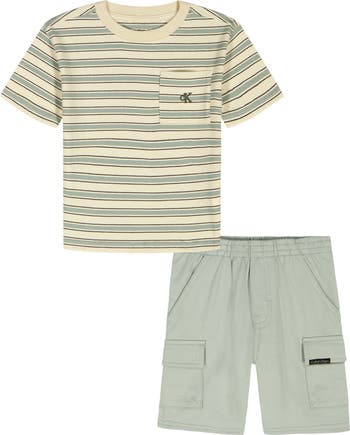 Playground adventures await in this comfy set featuring a striped T-shirt and pull-on cargo shorts.