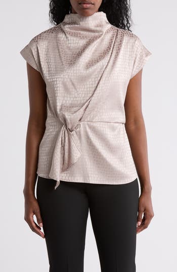 A lustrous jacquard elevates an unstructured dolman-sleeve top accented by attached waist ties for polished appeal.