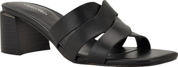 Interwoven straps create an eye-catching vamp on this day-to-night slide sandal balanced on a block heel.