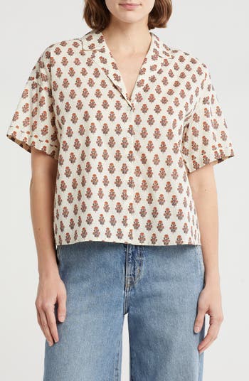 A classic camp shirt is crafted in a flowy high/low fit from breezy cotton for everyday laid-back polish.