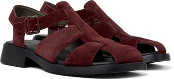 A smooth leather upper, subtle block heel and matte buckle closure bring contemporary appeal to this classic fisherman sandal.