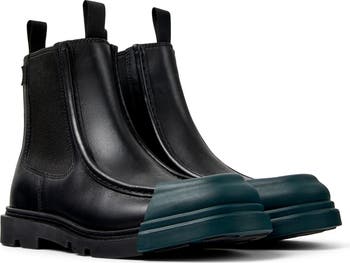 A contrasting cap toe adds iconic Camper quirkiness to a sleek Chelsea boot that's ready for any weather with a water-repellent finish.