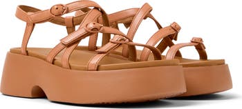 Soft, adjustable straps adorn the upper of a lofty leather sandal lifted by a chunky platform and sculptural block heel for walkable height. An anatomic footbed and XL EXTRALIGHT® sole provide comfort, flexibility and shock absorption.