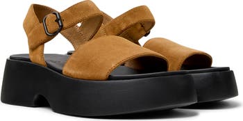 An anatomic footbed and an extralightweight sole ensure flexibility and comfort in a bold platform sandal topped with leather straps.