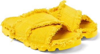 Soft organic cotton wraps the crisscross straps and contoured footbed of this lug-sole slide sandal traced with charming DIY-inspired fringe.
