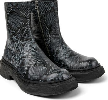 A chunky, textural sole and comfy OrthoLite® footbed ground a snakeskin-embossed leather boot secured with a gleaming side zipper for added ease.
