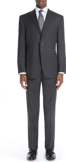Finely textured wool elevates a polished Italian suit featuring flat-front trousers paired with a notched-lapel jacket.