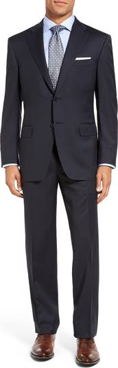 Year-round wool enriches a handsome, versatile suit framed with classic notched lapels for a timelessly professional look. The classic fit offers a bit of extra room through the chest and body for comfort.