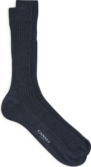 Soft ribbing enhances the luxurious comfort of dress socks knit from a blend of cashmere and silk and styled to elevate any formal or semiformal look.