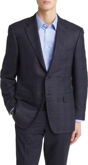 A dusky plaid woven in greens and greys smartens a sport coat tailored from a blend of silk and wool that brings polish and distinction to any formal look.