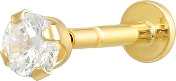 A single round cubic zirconia sparkles from this dainty stud earring featuring a click-in flat post back for easy-wear comfort.
