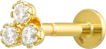 Round cubic zirconia sparkle from this single mini stud earring crafted from warm 10-karat gold and finished with a flat post back for easy-wear comfort.